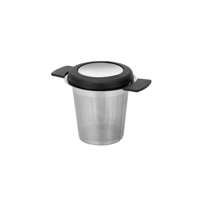 Infusor De Chá Tipo Cesta Em Inox Com Alça Silicone O infusor é feito em aço inoxidável, não é tóxico, super resistente. Pode usar diversas vezes, produto de alta qualidade e durabilidade. Tem um tamanho que encaixa facilmente na maiorias das xícaras, bules e canecas. Possui alça em silicone para facilitar a colocação e retirada do produto para descarte dos resíduos do chá. Possui tampa para ajudar na concentração do sabor e aroma. Deixando seu chá mais perfumado e saboroso. Tampa com acabamento em silicone.