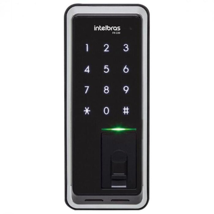 A FR 220 é uma fechadura digital de sobrepor com biometria, que também possui como método de identificação o cadastro de até 4 senhas numéricas em teclado touch screen luminoso de 12 teclas. Sua instalação é simples e sua alimentação é feita por 4 pilhas AA.