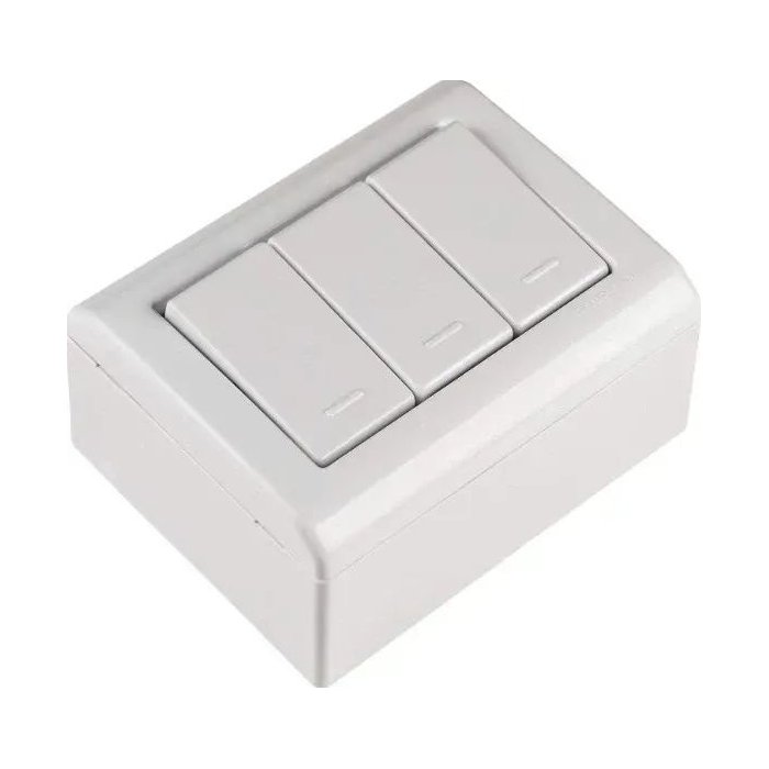 Inter 3 teclas Simples Tramontina - 57304021 | Peso 90 Gramas / Comprimento 7.1 centímetros / Largura 9 centímetros / Altura 4.3 centímetros / Fabricante Tramontina Eletrik / Fabricada em termoplástico na cor branca e é composta por caixa, tampa com encaixe de pressão e o módulo. Além de contar com sistema modular, possui janelas para inserir canaletas de diferentes dimensões.