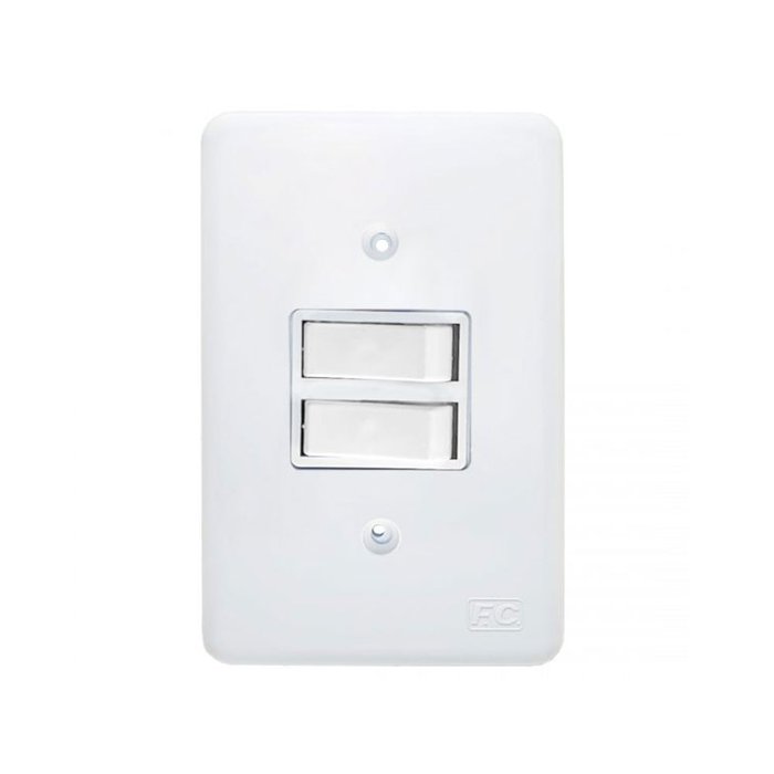 Produto com design inovador, ideal para suas instalações elétricas. Possui suporte com regulagem, permitindo perfeito ajuste do conjunto à parede. Fabricados em materiais plásticos isolantes(termoplásticos de engenharia) e ligas metálicas condutoras.Itens Inclusos: Interruptor 2 Teclas Simples 10A 250V com Placa 4x2, inclui módulo, placa, suporte para fixação e parafusos.Dimensões Placa: 4x2Cor Placa: Branco BrilhanteCor Tecla: BrancoMaterial: ABS brilhante de resistênciaMarca: FC empresa certificada ISO 9001 mais segurança e vida útil para o seu produtoIMAGENS MERAMENTE IILUSTRATIVA