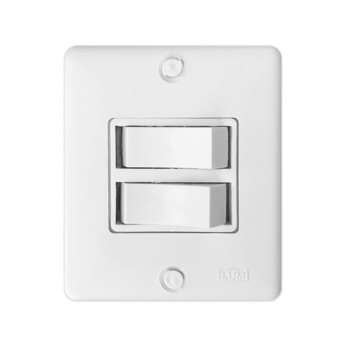 O interruptor paralelo com 2 duas tecla sobrepor, serve para colocar um Liga e desliga para lâmpadas distintas, ela suporta até 250V e 6A, fabricado em poliestireno, nylon antichama e cobre.