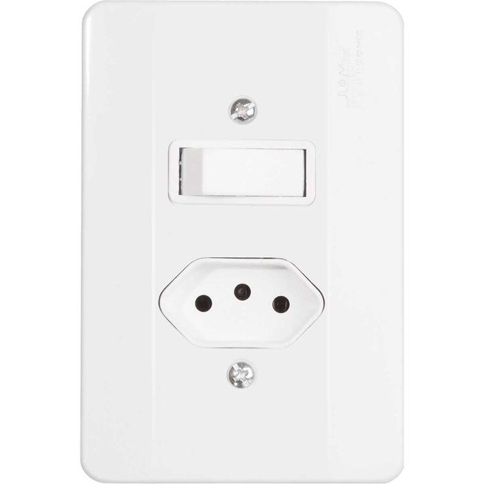 INTERRUPTOR SIMPLES + 1 TOMADA 3 PINOS 10A BRANCA MEC-TRONIC:Branco