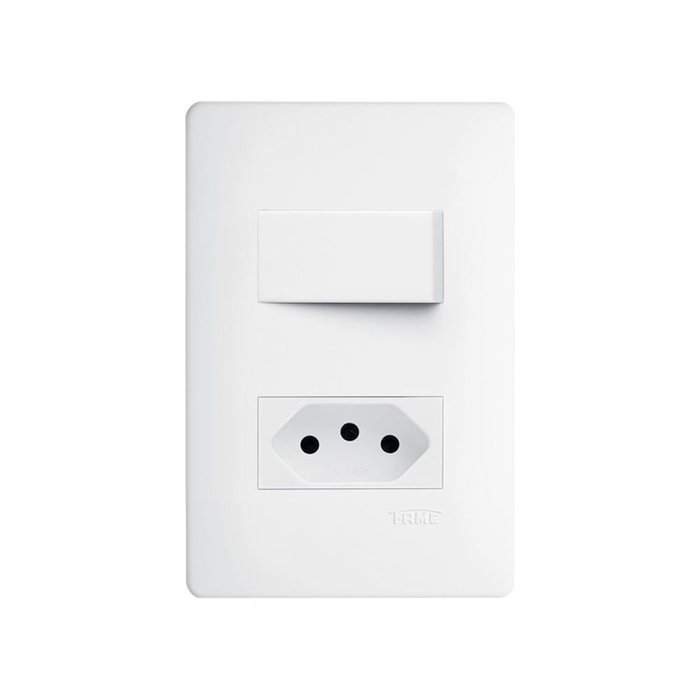 Interruptor Simples e Tomada 2p+t 10a Fame Habitat com Placa 4x2 Branco