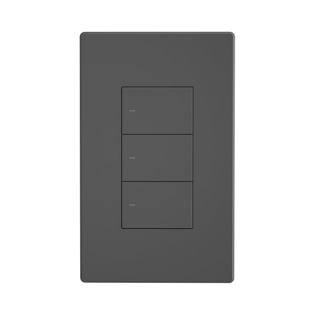 Um interruptor elegante na cor Grafite com botões físico, com borda de acabamento da mesma cor, com acabamento e material construtivo de excelente qualidade, e o único com proteção dentro do interruptor para a ligação elétrica e evitar assim curto-circuito no sistema.