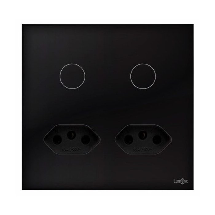 Interruptor Touch 2 Botões + 2 Tomada Glass Espelho Em Acrilico Preto Lumenx Preto