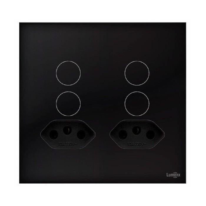 Interruptor Touch 4 Botões + 2 Tomadas Glass Espelho Em Acrilico Preto Lumenx Preto