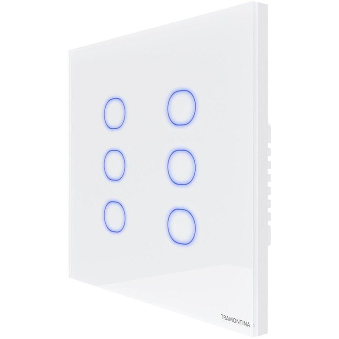 Interruptor Touch Smart 4x4 Tramontina Branco 6 CanaisO interruptor touch smart 4x4 Tramontina branco com 6 canais é a escolha perfeita para proporcionar uma iluminação inteligente e uma conexão completa para sua casa.Com ele, você tem o controle da iluminação da sua casa de diversos locais e na palma da sua mão, por comandos de voz via Alexa e Google Assistente ou através do aplicativo exclusivo Tramontina smart. Ele permite a programação de acordo com a sua localização, previsão do tempo e horários específicos. Seu design é sofisticado e moderno, e conta com painel de vidro na cor branca com botão touch retro iluminado com LEDs azuis, que também permite comandos com toque suave.Ele é bivolt e tem corrente máxima de 10 amperes, necessitando de fio neutro para a instalação e rede Wi-Fi de 2.4 giga hertz. Ele também possui bluetooth para auxiliar na configuração no aplicativo e aceita comunicação por rádio frequência 433 mega hertz, para acionar com controles remotos.Tenha em sua casa os interruptores Tramontina Smart e esteja sempre conectado com os ambientes que você ama! .Cuidados com o produto A instalação e segurança: É importante que o produto seja instalado por profissional habilitado. Antes de instalar, desligue a energia elétrica.Garantia2 anos (90 dias de garantia legal acrescido de 1 ano e 9 meses de garantia contratual). - -