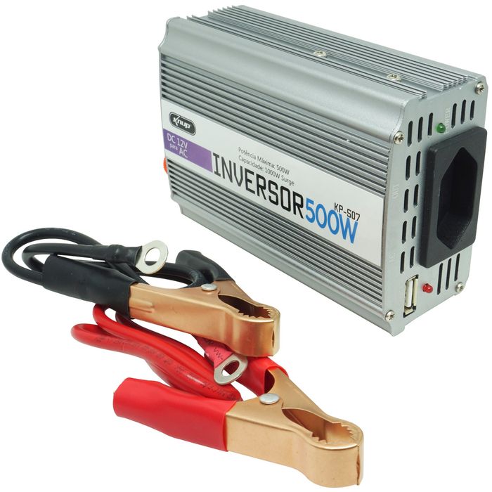 Inversor Conversor 12v para 110v 127v Potência 500w Veicular Transformador Tensão Knup Kp-507 Cinza