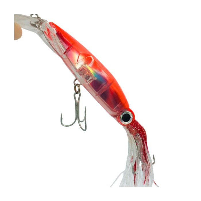 Isca Artificial Lula com garateias reforçadas para uma pesca segura com grandes fisgadas, a isca possui um lindo nado e cores formidáveis com pintura holográfica e tecnologia 3d que aumenta assim o realismo e a eficiência da isca, com garateias que suportam até 200 libras.