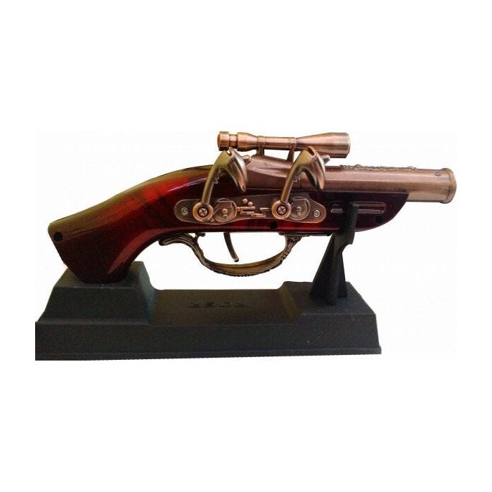 Isqueiro macarico pistola lindo isqueiro de mesa em estilo retro,modelo garrucha ideal para colecionar,presentear e decorar sua chama e um potente maçarico de cor avermelhada,causando lindo efeito. fabricado em resina e metal. recarregavel com gas butano. segue com carga teste. Dimensões: 18 x 8 x 3cm Peso: 220g