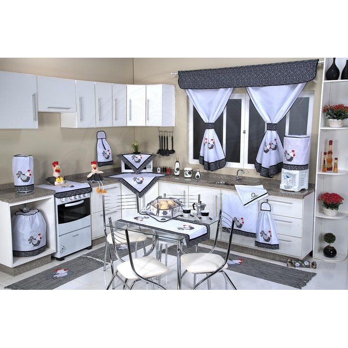Itens para Cozinha em Patchwork - Galinha Arte & Tear Cortina de Cozinha - Bordada