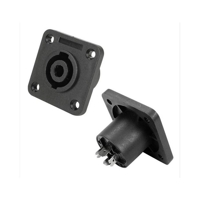 Tipo de Conector: Speakon fêmeaNúmero de Vias: 8Formato: Quadrado para montagem em painelMaterial: Plástico de alta resistência com contatos metálicosDimensões: Compatível com padrões de montagem de painéis quadrados