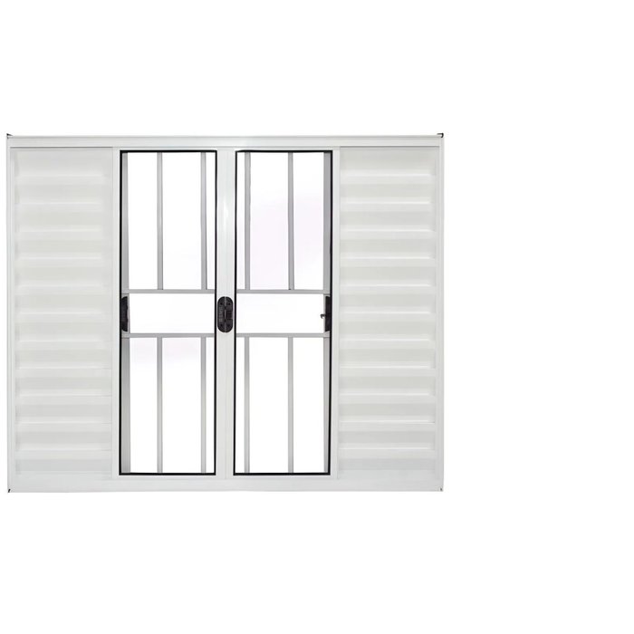 Janela Veneziana com grade, composto com 2 folhas fixas e 4 folhas móveis.