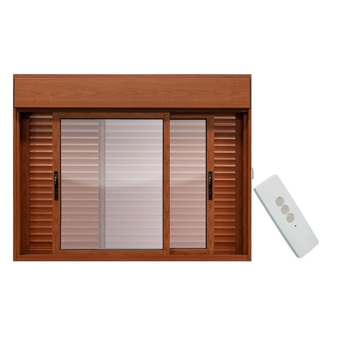 JANELA DE ALUMÍNIO SUPREMA PREMIUM COM CONTROLE REMOTO E REVESTIMENTO MADEIRO - Mercoportas & Janelas Com design diferenciado, a Janela de Correr Integrada possui melhor desempenho acústico através de um isolamento sonoro de maior eficiência, duas folhas móveis, fechos embutidos, possui recolhedor automático acionado por controle remoto, permite o controle da luminosidade no ambiente - passagem quase total da luminosidade ou bloqueio total, esteira com palhetas em alumínio preenchidas em poliuretano. Dimensões da janela: Para entender as dimensões do produto: Altura (A) em = 1,23 m Largura (L) = 1,53 m Profundidade (P) = 12 cm