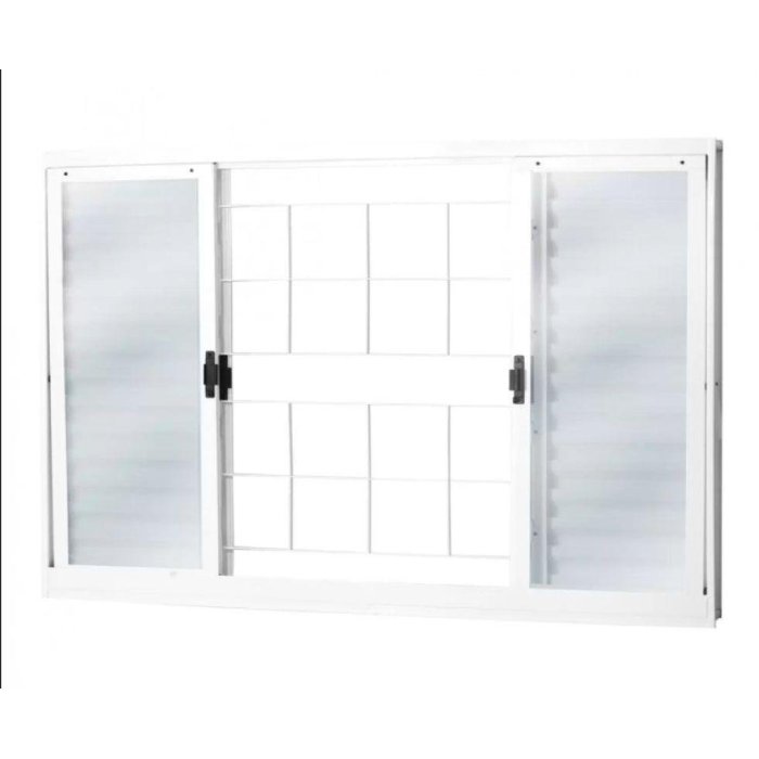 Janela de Correr 06 Folhas veneziana (02 Fixa) de Aço e Com grade Quadriculada Linha Ecoflex - Pintura Eletrostática Branca (Epóxi) A Janela de Correr Ecoflex possui perfis e acessórios desenvolvidos exclusivamente para estes produtos asseguram um projeto funcional, econômico e exclusivo.A janela veneziana de correr de aço. já vem com vidro e acompanha acessórios instalados, pintura de proteção epóxi branco (técnologia similar a pintura de carro, pintura uniforme e proteção interna e externa) e também com pintura de proteção de acabamento a pó na cor branca, que aumenta a proteção contra os raos UV. As roldanas dessa linha são confeccionadas em nylon e as janelas de seis folhas utilizam fechadura central. Produto de excelente qualidade e ainda conta com 07 anos de garantia do fabricante. Dimensões da janela:
