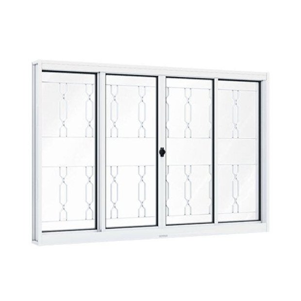 Janela de Aço de Correr 100x200cm 4 Folhas com Grade Mosaico e Vidro Riobras Branco