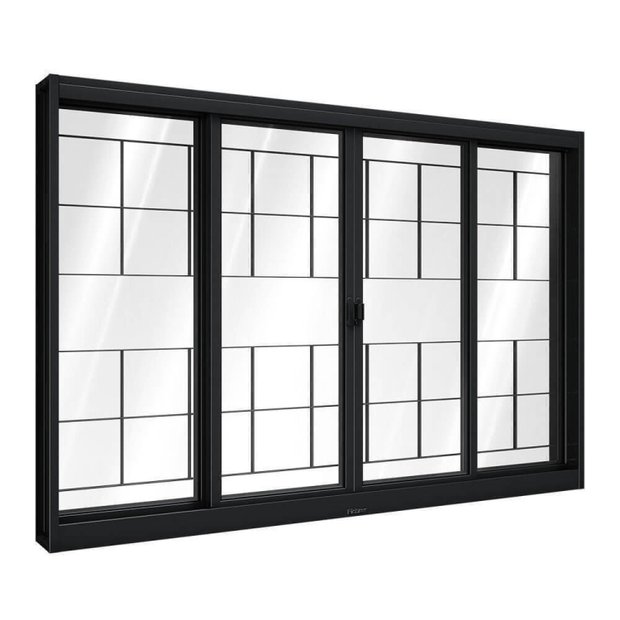 Janela de Aço de Correr Central com Grade Quadrada 4 Folhas 100x150cm Aço Pronto Riobras Preto