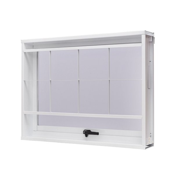 Janela de Aço Maxim-Ar 50x50cm com Grade Quadriculada e Vidro Boreal Unicsol Ramassol branco