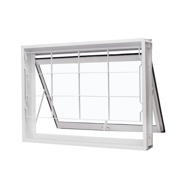 Janela de Aço Maxim-Ar 60x80cm com Grade Quadriculada e Vidro Liso Qualitysol Ramassol Branco