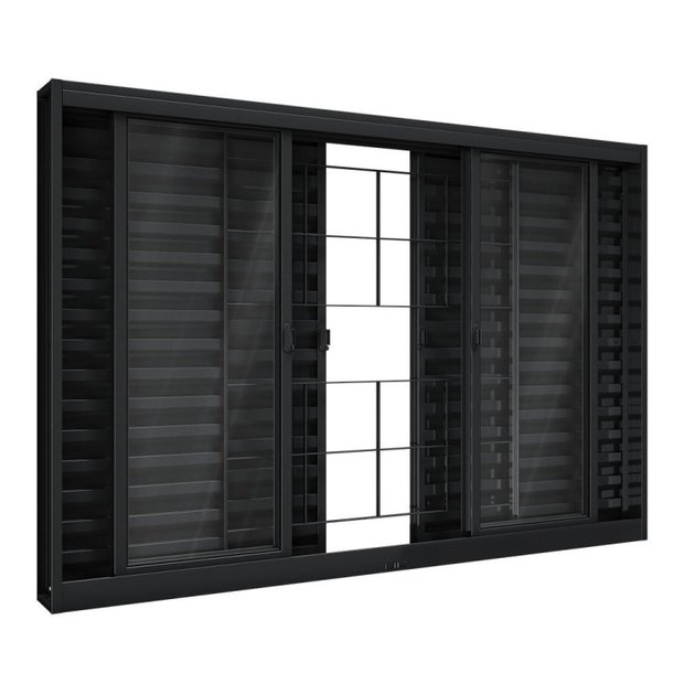 Janela de Aço Veneziana de Correr Central com Grade Quadrada 6 Folhas 100x150cm Aço Pronto Riobras Preto