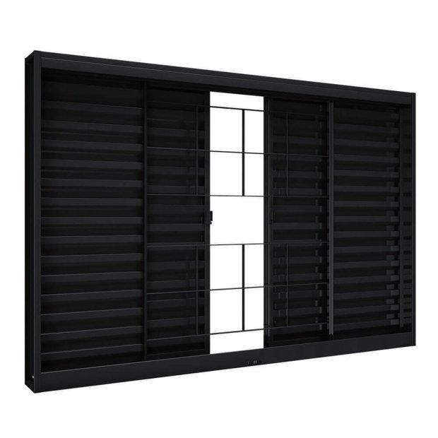 Janela de Aço Veneziana de Correr Central sem Folha para Vidro com Grade Quadrada 4 Folhas 100x120cm Preto