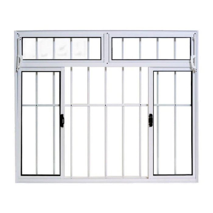 Janela de Correr Alumínio 04 Folhas (02 FIXA) com basculante e grade tubular Linha Classic 16 - Pintura Eletrostática Branca (Epóxi) A Janela de Correr Classic possui perfis e acessórios desenvolvidos exclusivamente para estes produtos asseguram um projeto funcional, econômico e exclusivo. As roldanas dessa linha são confeccionadas em nylon e as janelas quatro folhas utilizam fechadura central, os basculantes são de esquadrias de folhas móveis pivotantes e com grade tubular cor branca já embutida no produto. Produto de excelente qualidade e ainda conta com 07 anos de garantia do fabricante. Dimensões da janela: