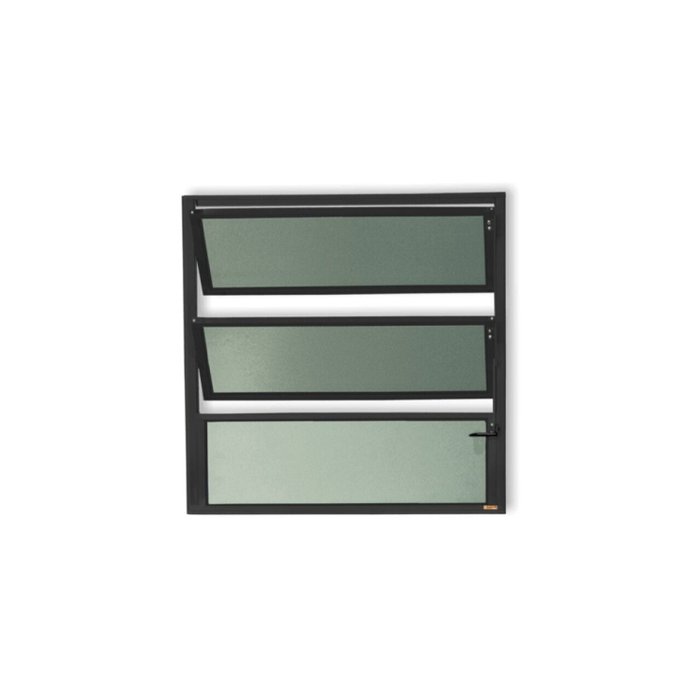 Janela Basculante de Alumínio Linha Plus Pintura Eletrostática Preta 1 Folha Fixa e 2 Folhas Móveis Vidro Mini Boreal 4mm Altura 60 Cm Largura 80 Cm Requadro 2,5 Cm Garantia de 5 anos contra defeitos de fabricação