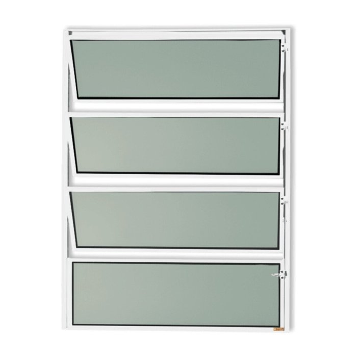 Janela Basculante de Alumínio Linha Master Pintura Eletrostática Branca 1 Folha Fixa e 3 Folhas Móveis Vidro Mini Boreal 4mm Altura 80 Cm Largura 60 Cm Requadro 2,3 Cm Garantia de 5 anos contra defeitos de fabricação