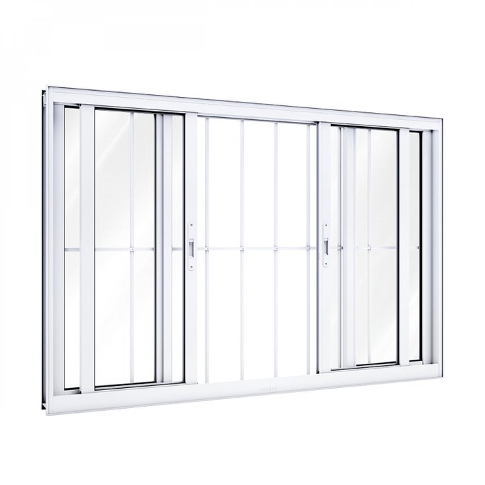 Janela de Alumínio de Correr 100x200cm 4 Folhas com Grade Lucasa Branco