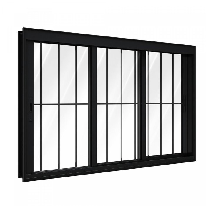 Janela com 3 Folhas Móveis com abertura lateral para ambos os lados.
