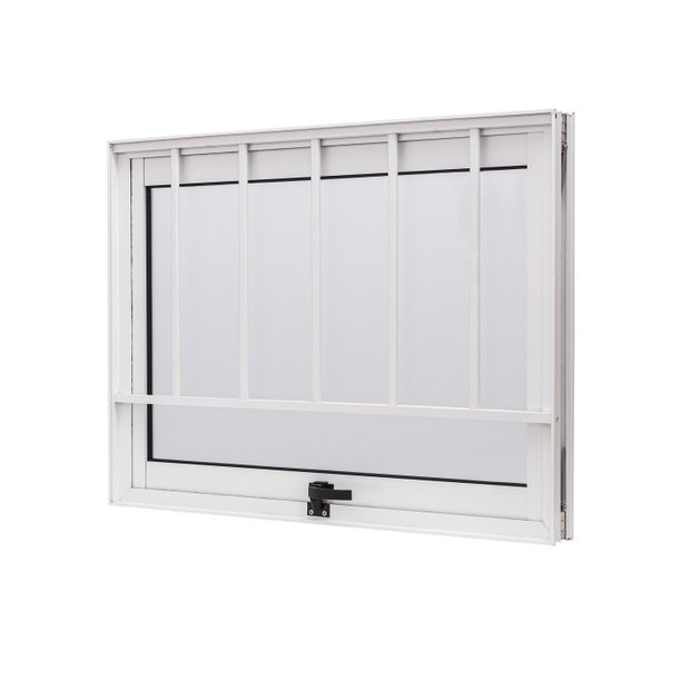 Janela de Aluminio Maxim-ar 60x60cm com Grade e Vidro Boreal Cristal Ramassol Branco