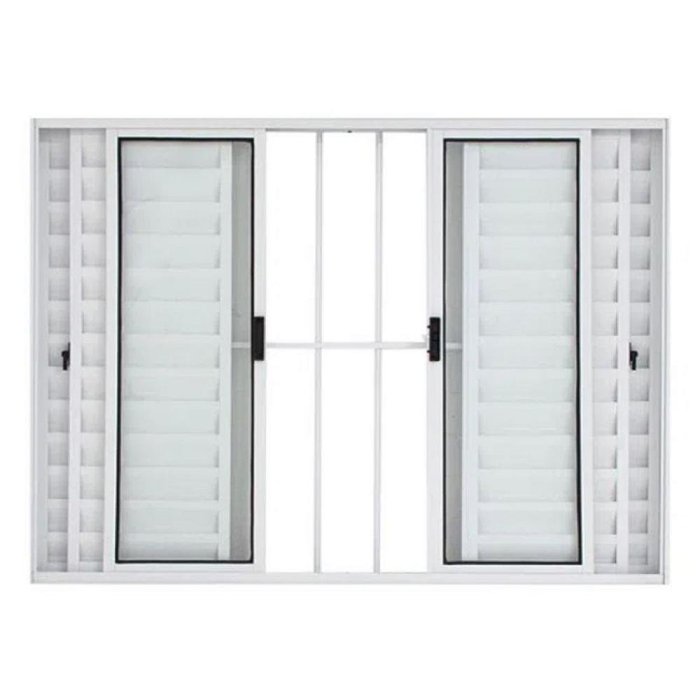 Janela de Correr Alumínio 06 Folhas veneziana com grade tubular (02 Fixa) Linha Classic - Pintura Eletrostática Branca (Epóxi) A Janela de Correr Classic possui perfis e acessórios desenvolvidos exclusivamente para estes produtos asseguram um projeto funcional, econômico e exclusivo. As roldanas dessa linha são confeccionadas em nylon e as janelas de seis folhas utilizam fechadura central, as grades já são embutidas na janela. Produto de excelente qualidade e ainda conta com 07 anos de garantia do fabricante. Dimensões da janela: