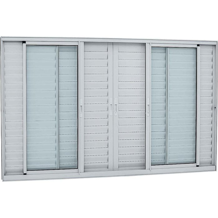 Janela de Correr Alumínio 06 Folhas veneziana (02 Fixa) Linha Maxx - Pintura Eletrostática Branca (Epóxi) A Janela de Correr Maxx possui perfis e acessórios desenvolvidos exclusivamente para estes produtos asseguram um projeto funcional, sofisticado e exclusivo. traz a melhor qualidade e alta durabilidade para proteger a sua casa.