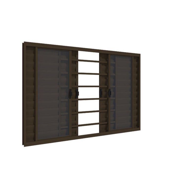 Janela de Alumínio Veneziana 100x200cm 6 Folhas - Cor: Marrom Preto