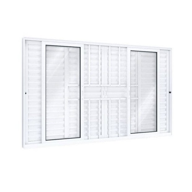 Janela de Alumínio Veneziana 120x200cm 4 Folhas Móveis 2 Fixas com Grade e Vidro Lucasa Eccellente Branco