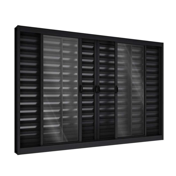 Janela de Alumínio Veneziana de Correr Central 6 Folhas 100x200cm Riobras Preto