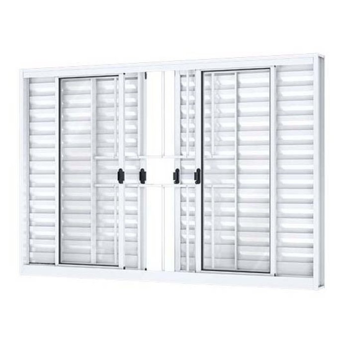 Janela de Alumínio Veneziana de Correr Central com Grade 6 Folhas 100x200cm Riobras Branco