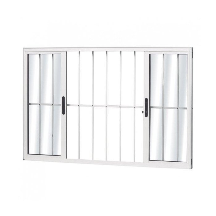 Janela de Correr Alumínio 4 Folhas com Grade MGM Sólida 120x200cm Vidro Mini Boreal Branco