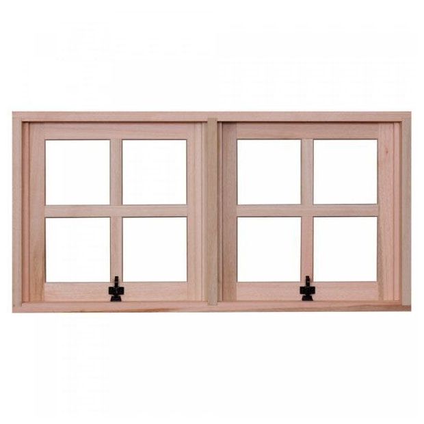 Kit janela maximar Eucalipto, Ref. EWK MP53 RondoSul, com dois módulos móveis horizontais (dois caixilhos na horizontal). Caixilhos para vidros quadriculados. Produto com braços simples de alumínio e fecho de nylon preto. Acompanha um jogo de guarnições (vistas). Não acompanha vidros. Acompanha baguetes de madeira para instalação dos vidros.