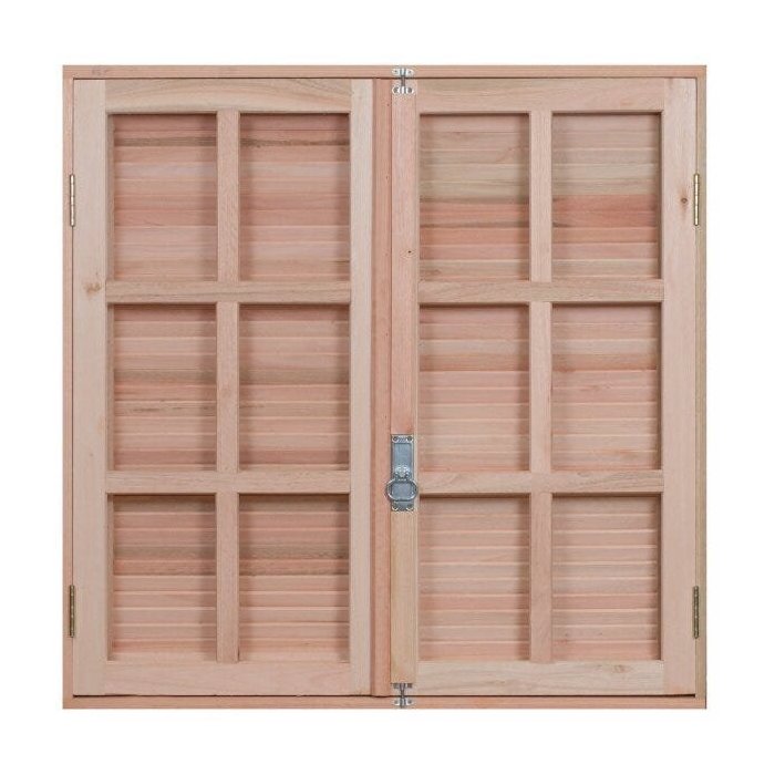 Kit janela Eucalipto, Ref. EWK 150 RondoSul, com caixilhos para vidros de abrir e com venezianas de abrir. Caixilhos para vidros quadriculados. Produto com trilhos de alumínio. Produto pronto para a instalação. Acompanha um jogo de guarnições (vistas). Não acompanha vidros. Acompanha baguetes de madeira para instalação dos vidros.