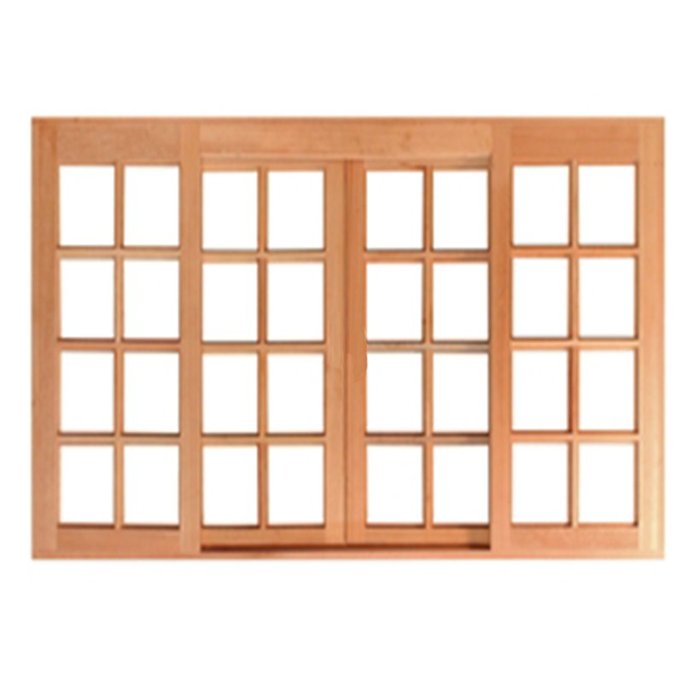 Janela de Madeira Vitro de Correr Quadriculado Reto de Cedro Arana Batentes de 14 CM
