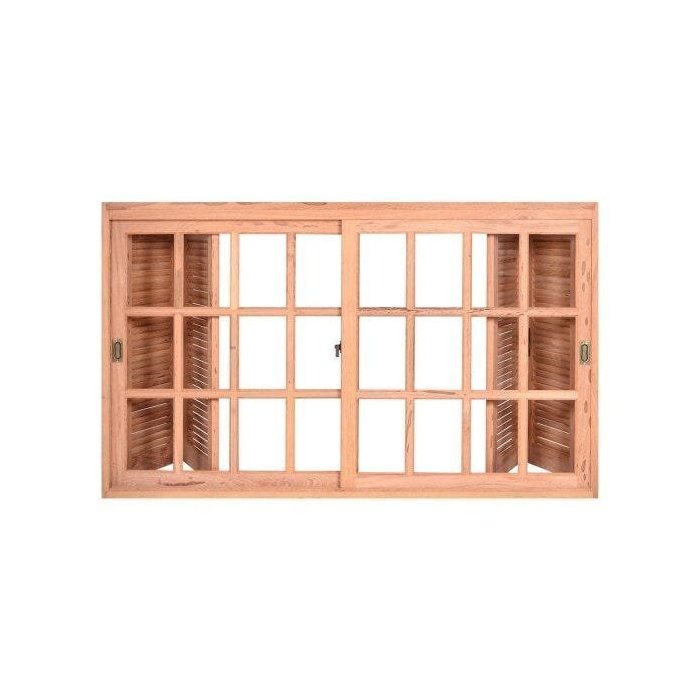 ^A Janela JE121 da Esel possui 4 venezianas estilo pantográfica (cotovelo), duas para cada lado e 2 caixilhos de correr, as venezianas possuem dobradiças com acabamento em ouro velho, 2 cremonas de embutir acabamento ouro velho, trilho de alumínio, caixilhos com trilho de alumínio e um fecho caracol. A madeira usada nas venezianas, caixilhos e no batente é de 3cm de espessura. O número de quadriculados varia de acordo com o tamanho e modelo da janela. Acompanha guarnição (vistas) 6cm para um lado. O tom da madeira pode variar, por se tratar de um produto natural.