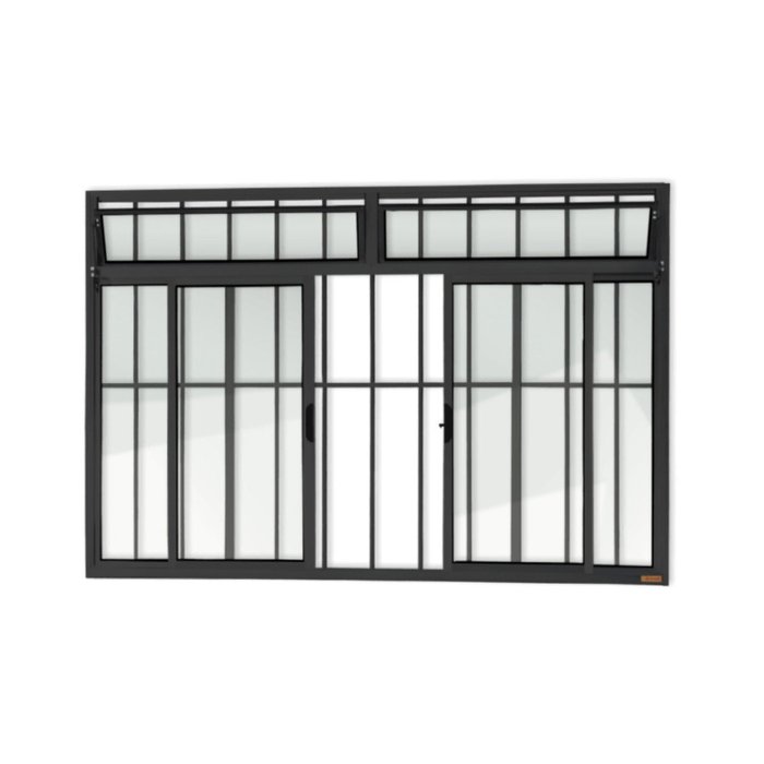 Janelas 4 Folhas com Bandeira de Alumínio Linha Plus Pintura Eletrostática Preta 2 Folhas Fixas e 4 Folhas Móveis Vidro Liso Incolor 3mm Altura 100 Cm Largura 120 Cm Requadro 5,5 Cm Garantia de 5 anos contra defeitos de fabricação