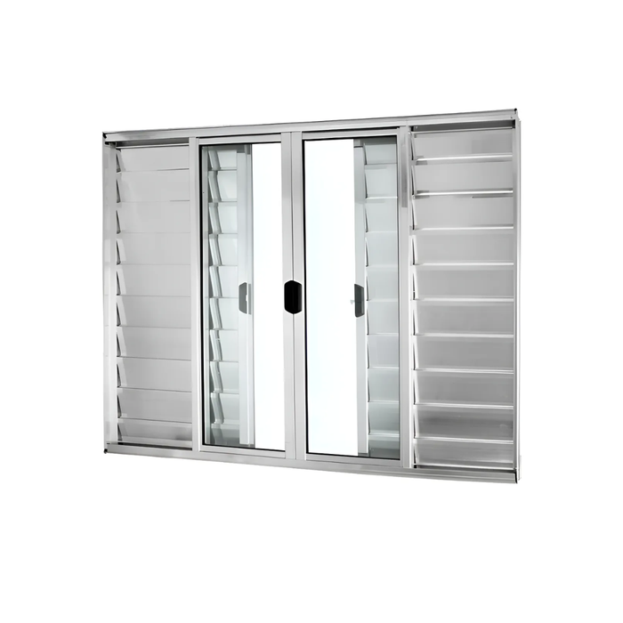Veneziana deslizante com 6 folhas, ideal para ventilação e luminosidade. Modelo padrão, sem grades, prática, funcional e de fácil limpeza. LINHA 14