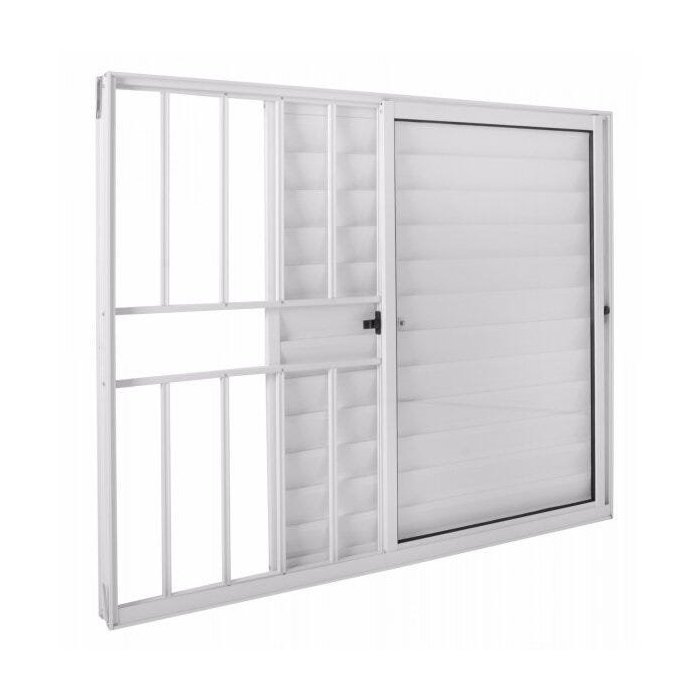 Janela Veneziana Alumínio 3 Folhas com Grade Vidro Liso Integral Tecno Master 100x120x7,8cm