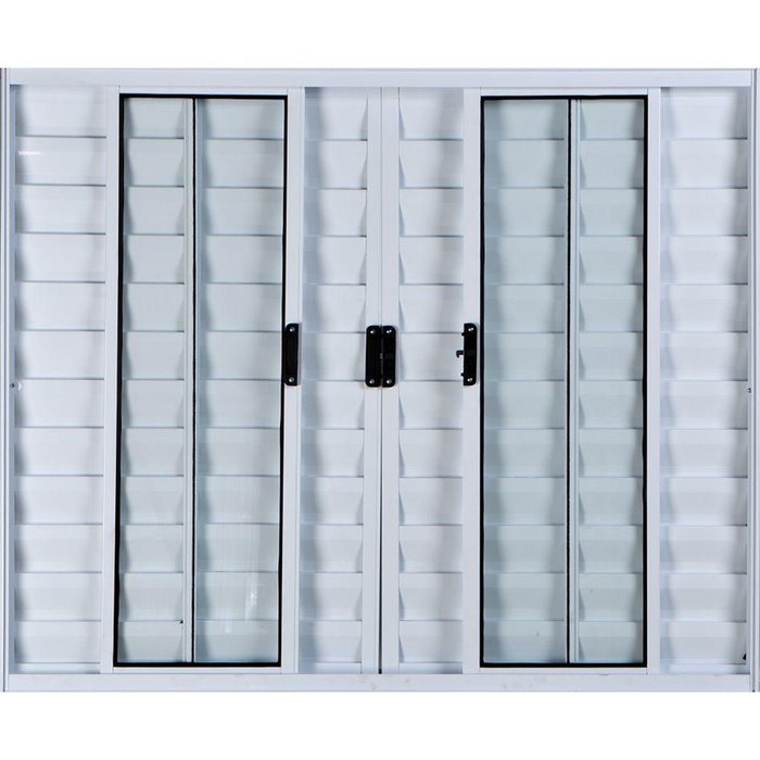 Janela Veneziana De Alumínio 6 Folhas 1,20 X 1,50 Sem Grade Cor Branco Linha All ModularVENEZIANA 6 FOLHAS SEM GRADE Venezianas 6 folhas de Alumínio foram feitas para trazer conforto e comodidade. Mais utilizada em quartos (dormitórios) por seu formato discreto e aconchegante, pode também ser utilizada nos mais diversos ambientes tais como: galpões, escritórios e etc... Devido ao seu sistema de abertura central, proporciona uma maior claridade e ventilação e servindo também para manter o ambiente mais fechado e escuro.Especificações TécnicasVenezianas de Alumínio de Correr.Altura Total Produto: 120 Centímetros. Largura Total Produto: 150 Centímetros.Espessura Total do Produto: 8,5 Centímetros.Pintura Eletrostática Branca (Epóxi).Modelo e Espessura do Vidro: Vidro Incolor de 3,5mm.Modelo de abertura: 6 Folhas (Corre Central) – 2 Folhas Fixas Laterais – 2 Folhas de Correr.Contêm: 4 Folhas em Aluminio (2 Vedada / 2 Ventiladas) – 2 Folhas de VidroSem Grade InclusaConteúdo: Perfis de Alumínio, Batentes, Ferragens, Vidro e Acessórios.Produto Pronto para Instalar (Acabado e Montado) Fácil Instalação.Fabricante: Fabricação Própria (Desde 2004 no mercado).Local indicado: Ambiente Interno e Externo - Residencial e Comercial.Produto Normatizado (ABNT).Produto com Alta Durabilidade.Embalagem de Proteção Incluso.Garantia contra defeitos de fabricação.Marca :ALL MODULAR
