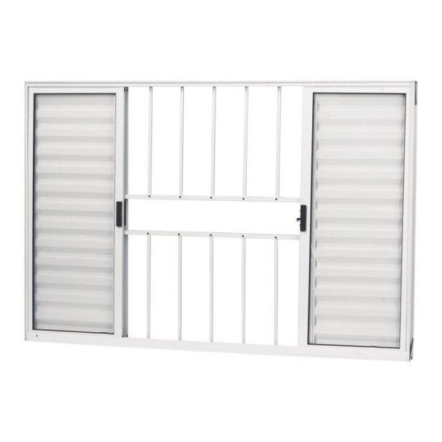 Janela Veneziana Alumínio 6 Folhas com Grade MGM Soft 100x120cm Vidro Liso Fumê Branco