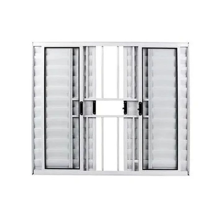Contendo a aberura na parte central sendo 4 folhas com veneziana (duas fixas, duas móveis) e 2 folhas móveis de vidro. Vidros resistentes de 3mm de espessura.