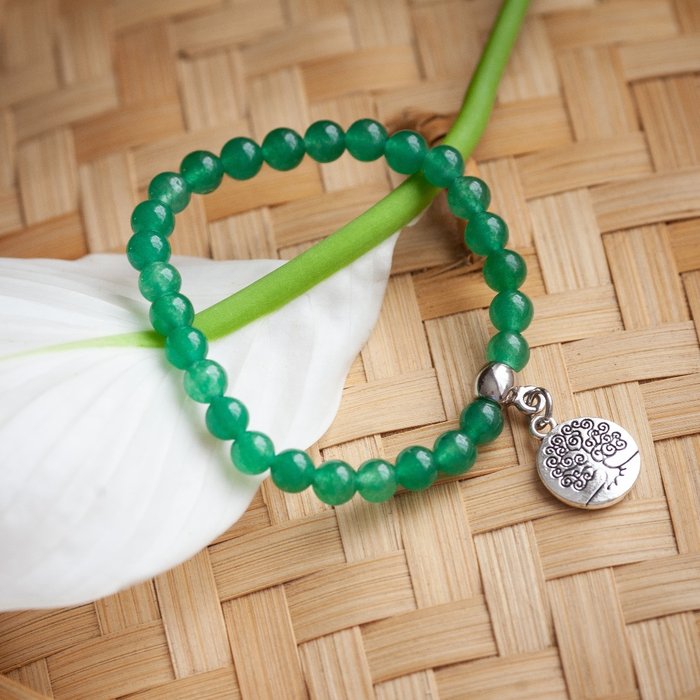 Japamala 27 Contas - Quartzo Verde e Árvore da Vida Leve Luz P - 17 a 17,5cm
