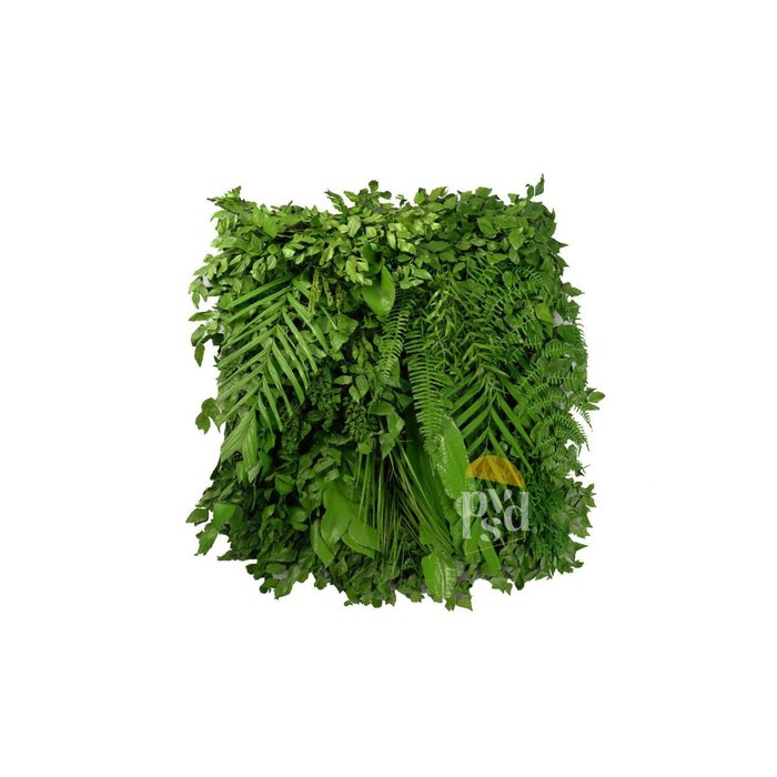 COMPOSIÇÃO DE FOLHAGENS NATURAIS PRESERVADAS EM PLACAS MODULARES VERTICAIS, PERFEITAS PARA PAREDES, COLUNAS E QUADROS.